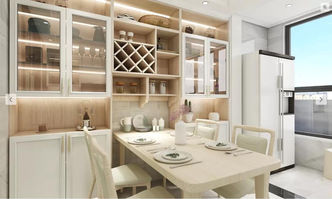 在全鋁餐邊柜的中間增加嵌入酒瓶的網格架